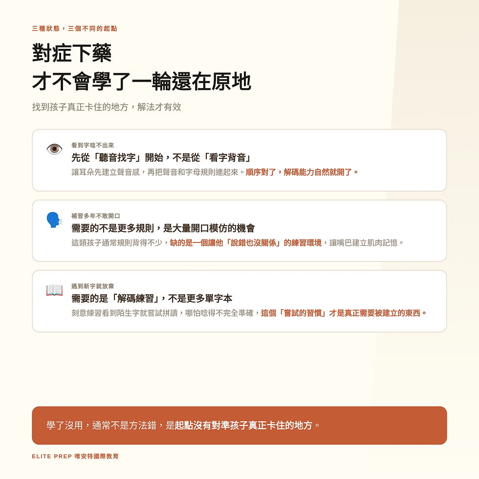 學了沒用,通常不是方法錯,是起點沒有對準孩子真正卡住的地方。